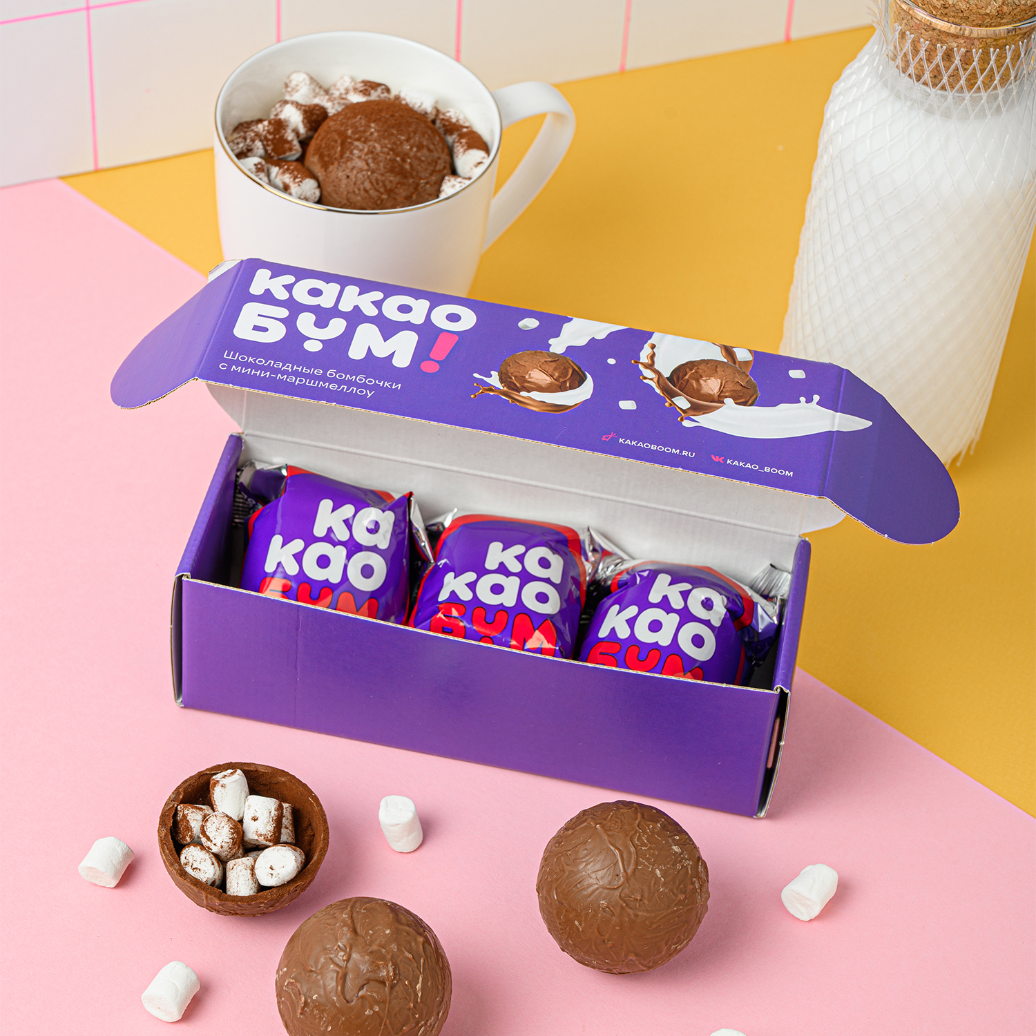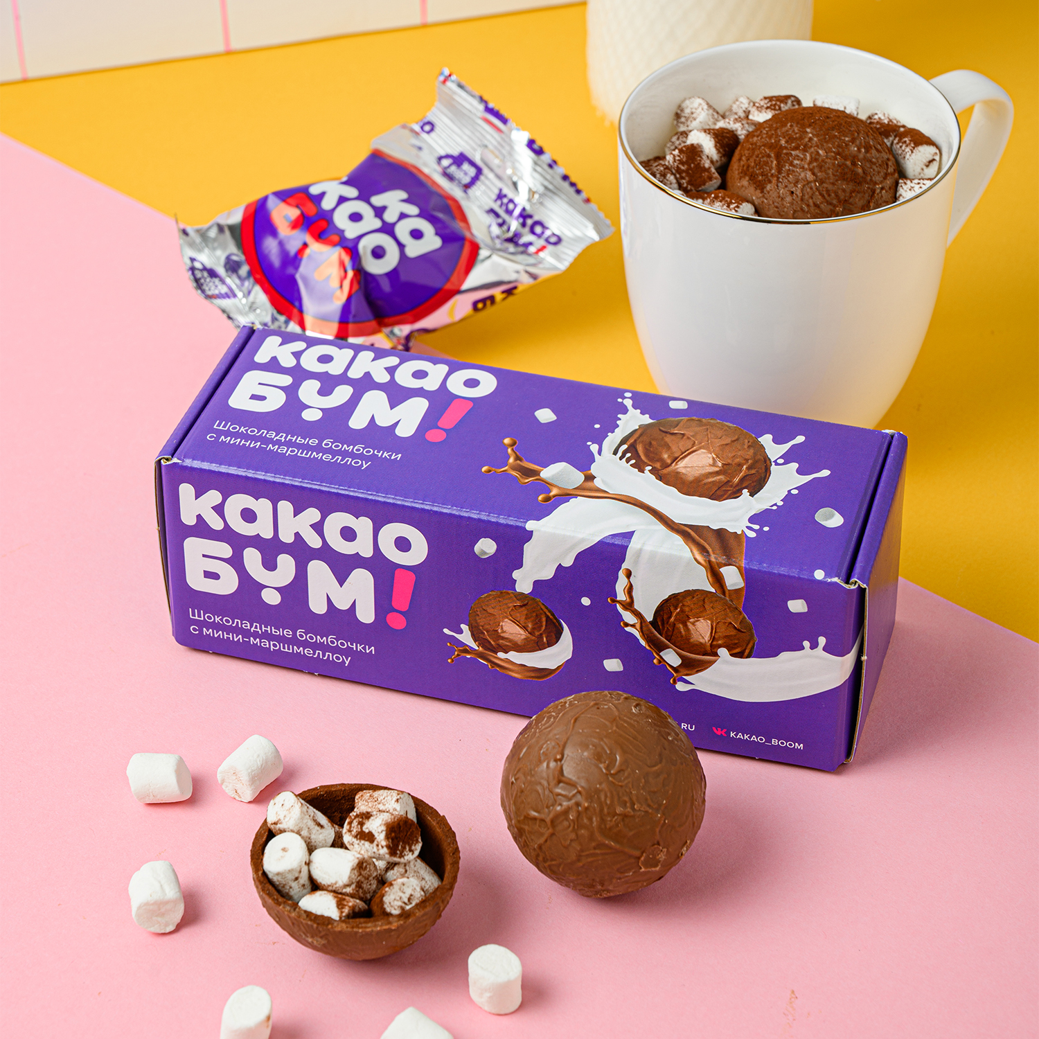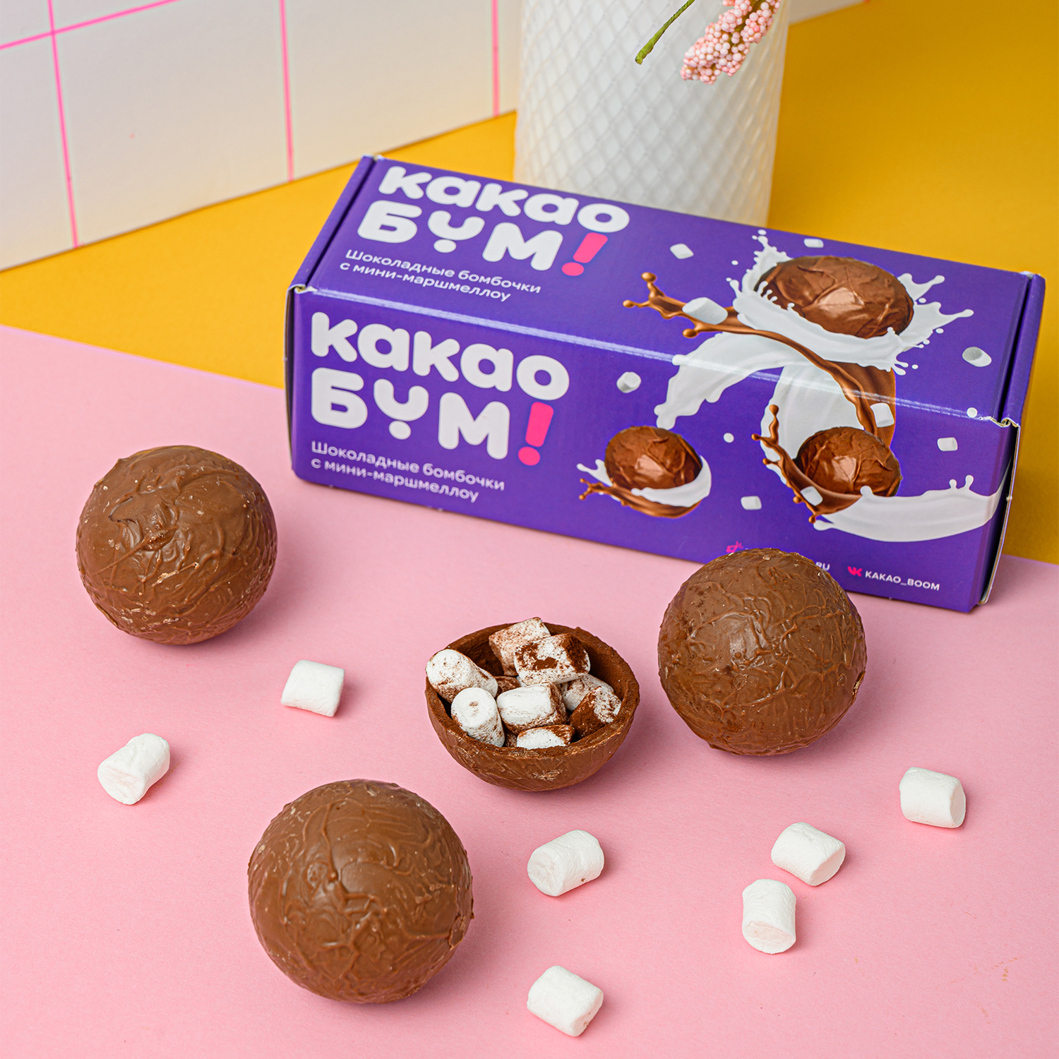 20 Наборов из 3-х шоколадных бомбочек с маршмеллоу внутри будет прекрасным подарком на праздник и просто поводом для совместного уютного семейного вечера за чашечкой какао.