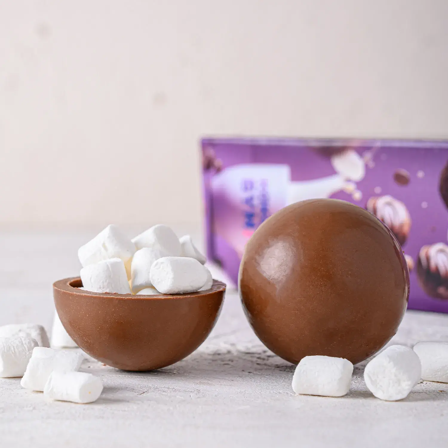 Набор из 3-х шоколадных бомбочек с маршмеллоу внутри будет прекрасным подарком на праздник и просто поводом для совместного уютного семейного вечера за чашечкой какао.